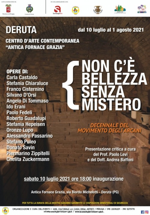 Mostra per i dieci anni del Movimento degli Arcani presso Centro d'Arte Contemporanea "Antica Fornace Grazia" aperto dal martedì alla domenica, ingresso libero, dalle 09.30 alle 12.30 e dalle 15.00 alle 18.00.